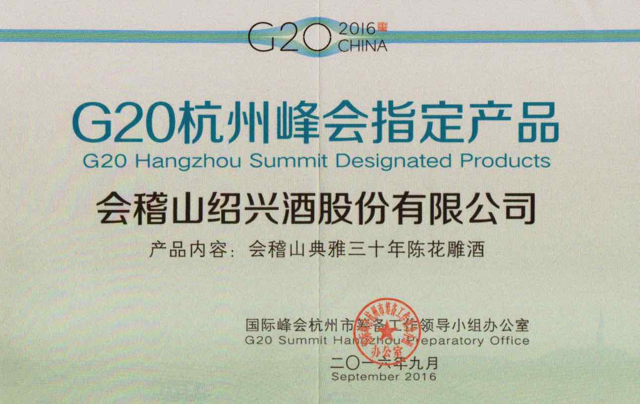 2016年,G20杭州峰會(huì)接待專用黃酒。這與蘭亭成為當(dāng)時(shí)的國(guó)宴用酒有異曲同工之妙(口味口感更適中),更因?yàn)榱?xí)書記在浙江任職多年,對(duì)于黃酒有很深的了解,同時(shí),在中國(guó)文化復(fù)興的時(shí)候,用黃酒這樣的本土酒來作為G20峰會(huì),更能代表中國(guó)。